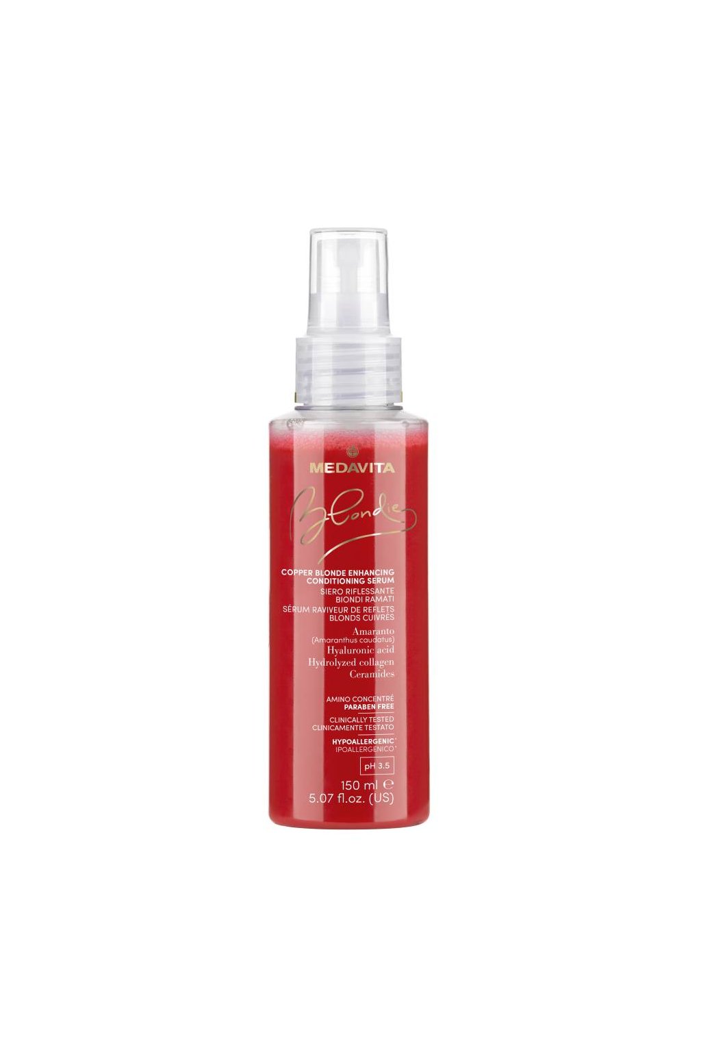 Medavita COPPER BLONDE CONDITIONING SERUM, pH 3,5 - Kondicionér ve spreji s rozjasňujícím účinkem pro měděné odstíny. Uložením obsažených pigmentů vlasy natónuje a zafixuje jejich odlesky. Dodá hebkost a kosmetický efekt.