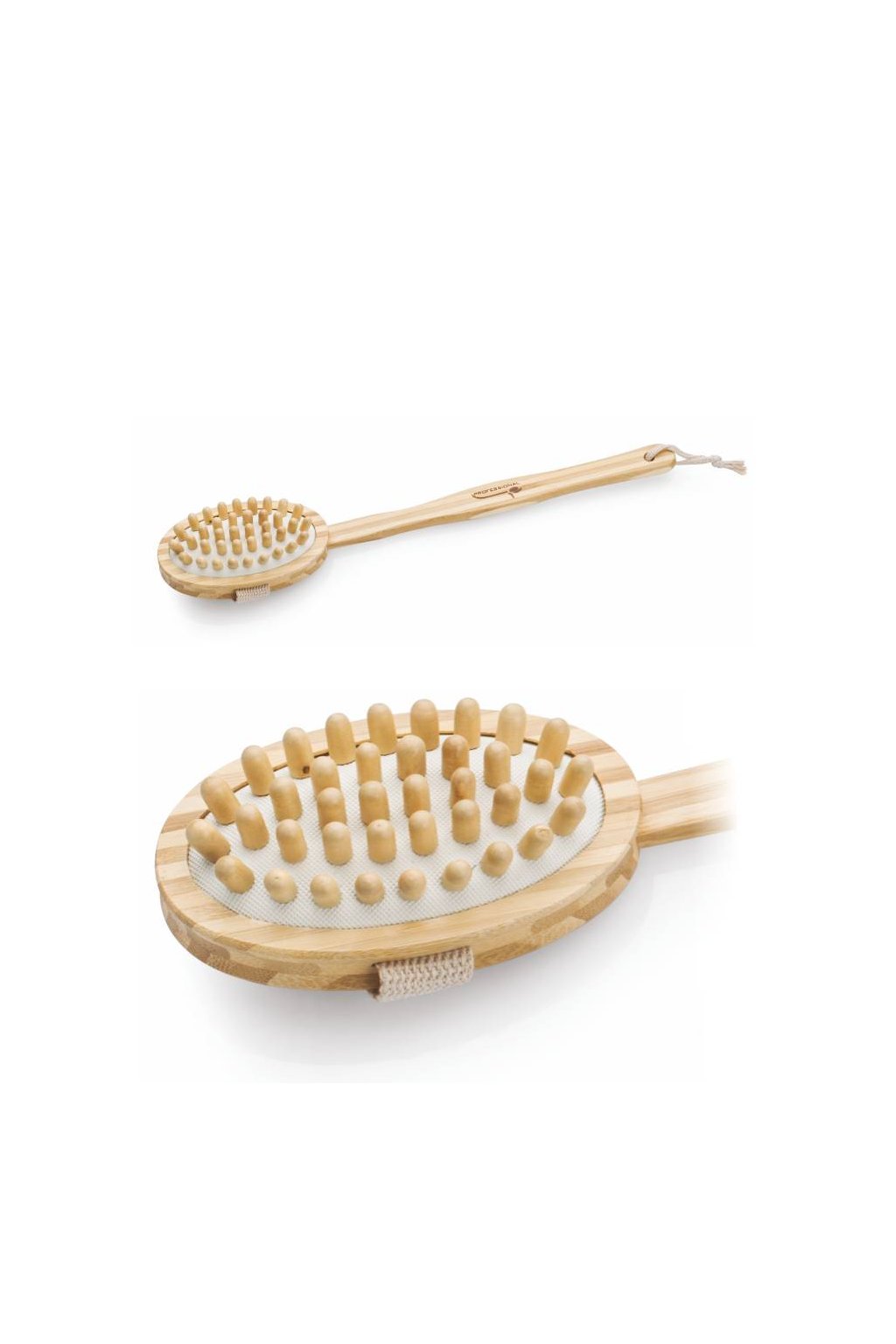 - Spa beauty Masážní kartáč dřevěný dlouhá rukojeť, kulaté masážní trny, proti celulitidě