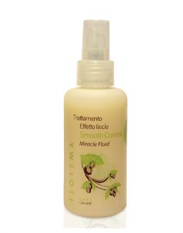 Teotema Smooth Control Miracle Fluid - Sérum na vlasy pro přirozené vyrovnání vlasů. Pomocí speciálního vyrovnávacího komplexu docílíte rovnějších vlasů bez chemických vyrovnávacích přípravků. Obsahuje přírodní keratin, kokosový olej, serin a vitamín E. Vyrovnávací komplex je aktivován tepelným účinkem fénu nebo žehličky na vlasy.