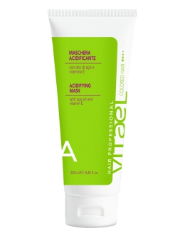 Vitael Acidifying Mask - Intenzivní maska s kyselým pH pro vlasy barvené, chemicky upravované a oslabené. Obsahuje exkluzivní antioxidační komplex na bázi oleje z Acai, ovocných kyselin, vitamínů a UV filtru. Vlasy zahalí do speciálního pláště, který je chrání před vnějšími agresemi. Pomáhá udržovat barvu, prodlužuje její stabilitu a zvýrazňuje lesk. Přináší výživu a hebkost.