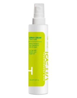 Vitael Spray Cream TEN in ONE - Krém ve spreji 10 v 1. Ochranné a revitalizační ošetření pro všechny typy vlasů s keratinem a arganovým olejem bez oplachování, ideální pro časté použití. Inovativní péče, jedinečná a praktická, na bázi arganového oleje, keratinu a pantenolu. Okamžitě mění všechny typy vlasů: dává krásu, hydrataci, hebkost a disciplínu. Chrání před teplem z fénu a žehličky a chrání před vnějšími atmosférickými vlivy.
