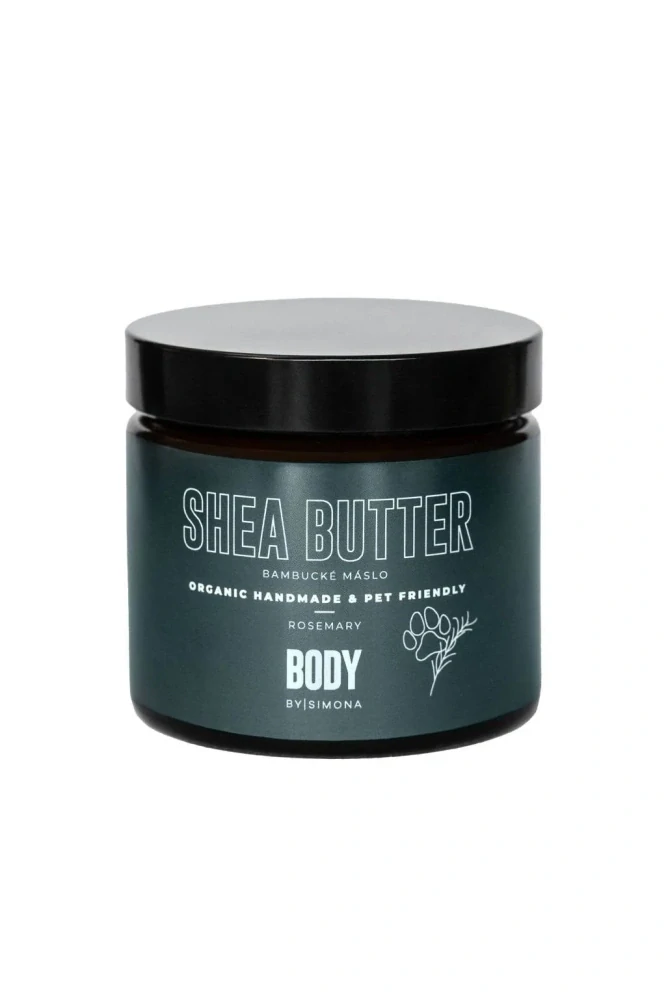 Beauty By Simona Shea Butter Bambucké máslo Rosemary Dog/Pet Friendly - Milujeme široké spektrum účinků směsi Rosemary. Je pečlivě navržená pro zdraví a ochranu pokožky lidí a jejich domácích mazlíčků. Ingredience působí synergicky, napomáhají rychlejší regeneraci a poskytují hydrataci, posilují kožní bariéry a díky zklidňujícím a protizánětlivým účinkům rozmarýnového oleje pomáhají snižovat riziko infekcí, zatímco antioxidační vlastnosti vitaminu E a lipidy a esenciální mastné kyseliny obsažené v bambuckém másle chrání pokožku před stresovými faktory z okolního prostředí.